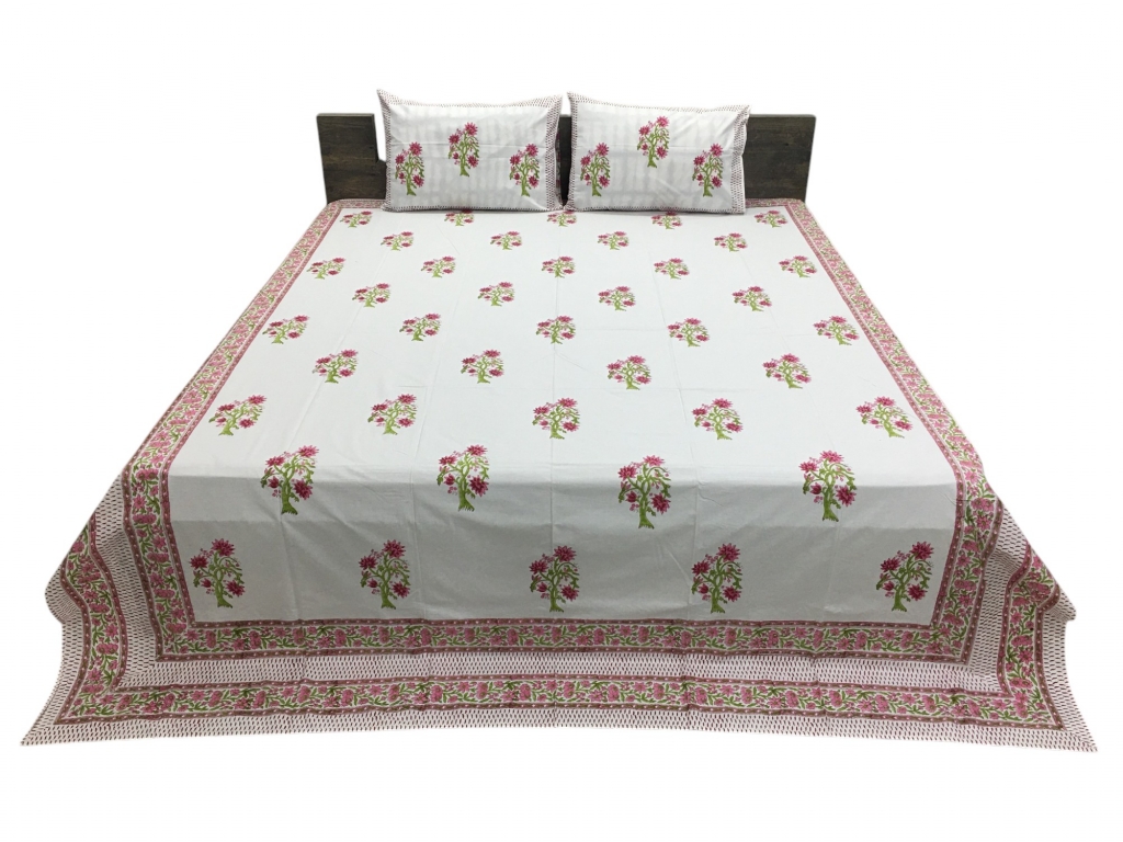 COTTON HAND BLOCK PRINTED PERCALE BEDSHEET