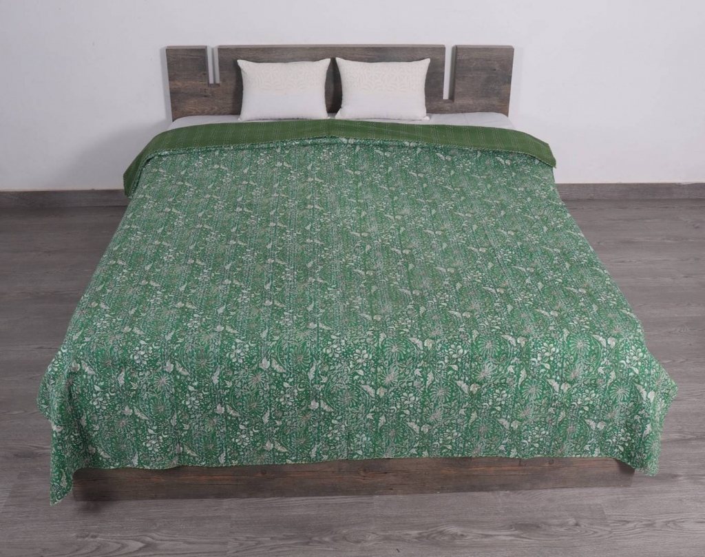 NEW SCREEN PRINTED COTTON KANTHA BEDCOVER